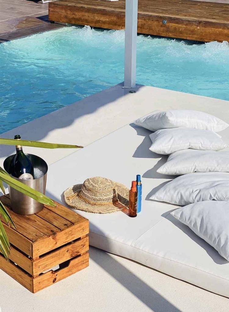 Non solo una piscina ma una summer spa, vasca con postazioni sedute in cui rilassarsi e prendere il sole senza disturbi di alcun tipo.